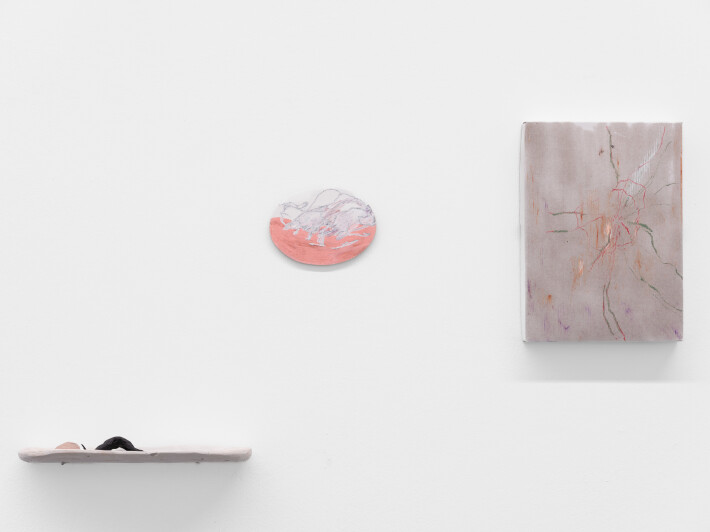 When do we feel safe, secure, protected? How do we create a safe space? In her series of works titled «now/sometime/then», Laura Grubenmann (she/her) develops fragile environments from vessels, objects and paintings that open utopian visual worlds. They invite us to dream individually and remember collectively. Terracotta bowls filled with water contain small objects: stones or cast tin objects that oscillate between naturalness and artificiality. Next to them are paintings and further objects along the walls. These are niches in which melancholy and hope overlap. Laura's working method is tentative, open and process oriented. Drawings, paintings and sculptures emerge from correspondence and collected materials, which she combines and recontextualises. She invites us to listen attentively to what is already there—so that we can imagine what is yet to come.